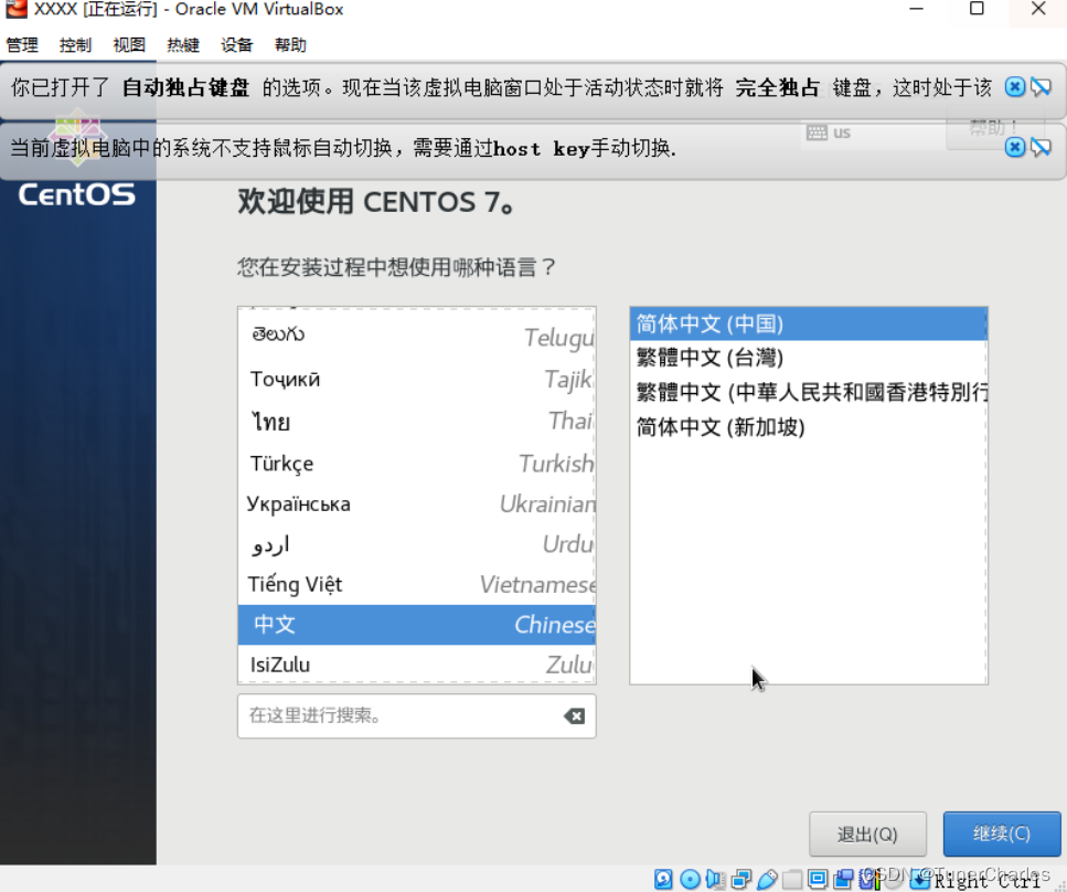 此时,会在centos上安装一些工具:鼠标自动在宿主机、虚拟机之间移出...同时,在centos上会出现一个安装镜像
