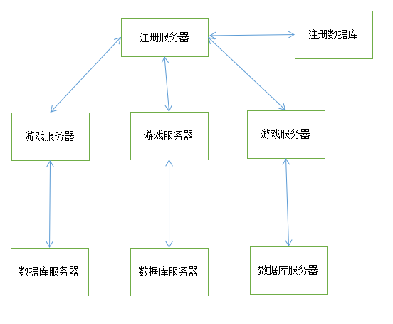 单台服务器不行,我们就增加几台,将功能分到不同服务器上。一般将注册程序分出来,放到一个服务器。数据库单独一个服务器。其他的运行逻辑放到一个服务器。