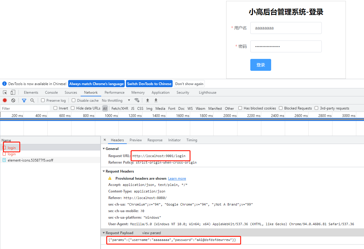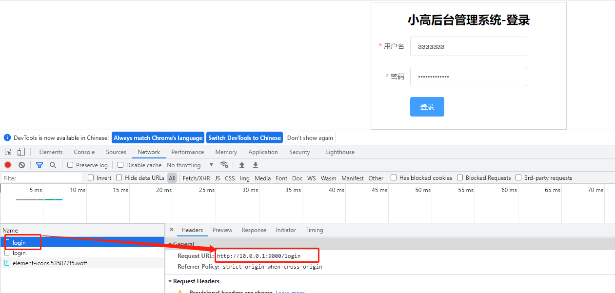 再次在登录页面,请求登录接口,效果如下