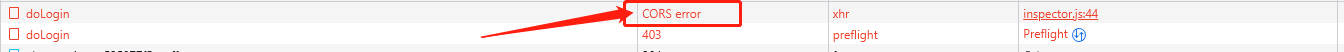 再请求接口,发现出现CORS ERROR,说明跨域了,因为前台端口8080,后台端口9001