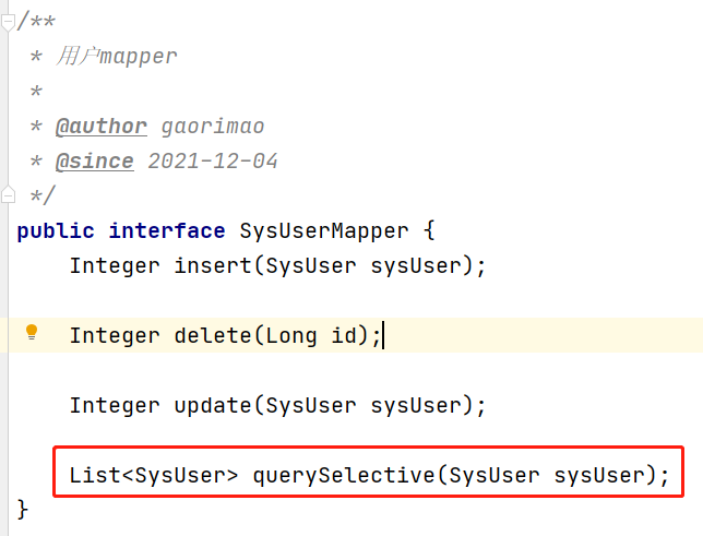 mapper层,没加@mapper注解原因是在启动类配置了@MapperScan("com.grm.mapper")