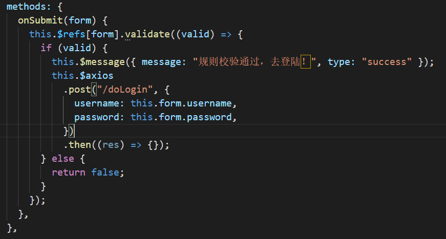this.$message({ message: "规则校验通过,去登陆!", type: "success" });