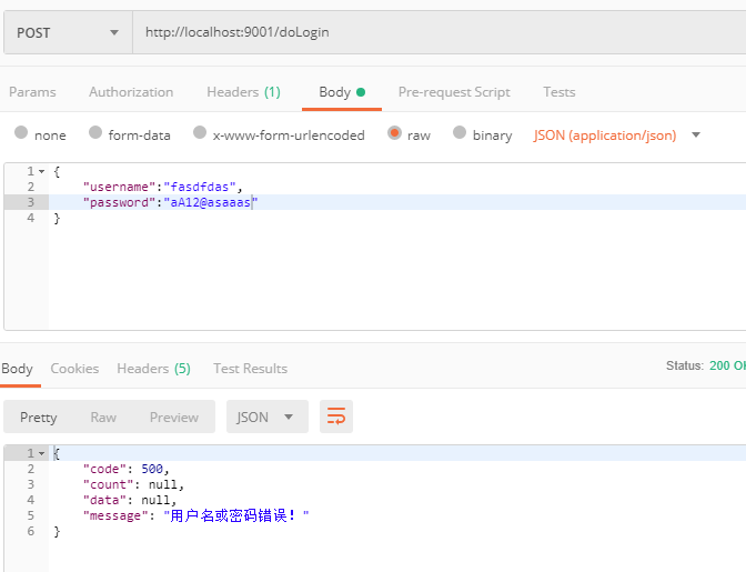 throw new BusinessException(500, "用户名或密码错误!");