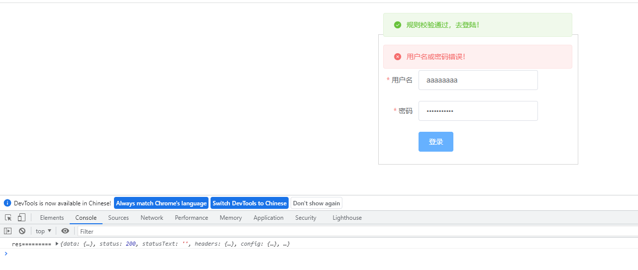 在前端页面,进行登录,查看效果