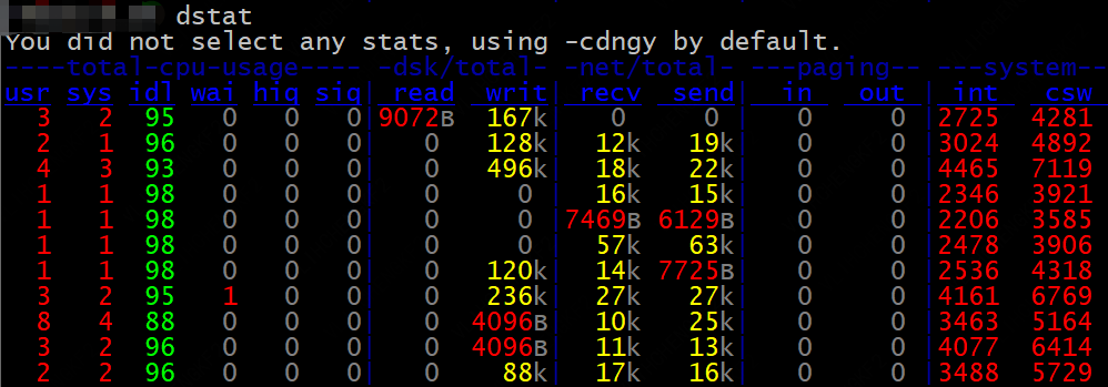 主要查看net/total列,recv表示接受,send表示发生