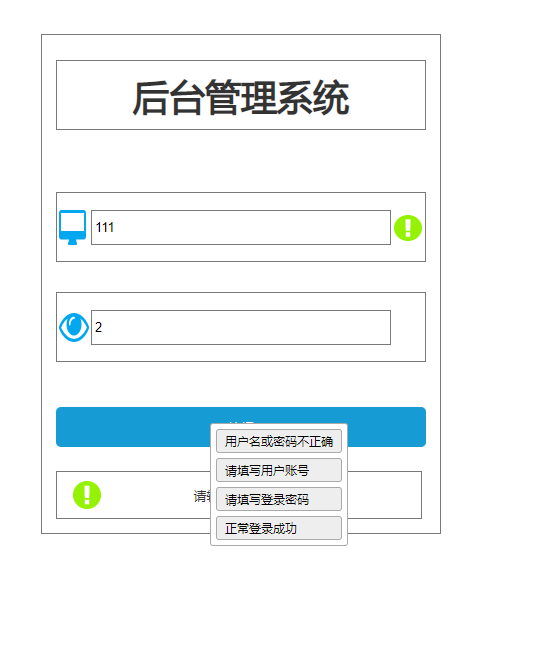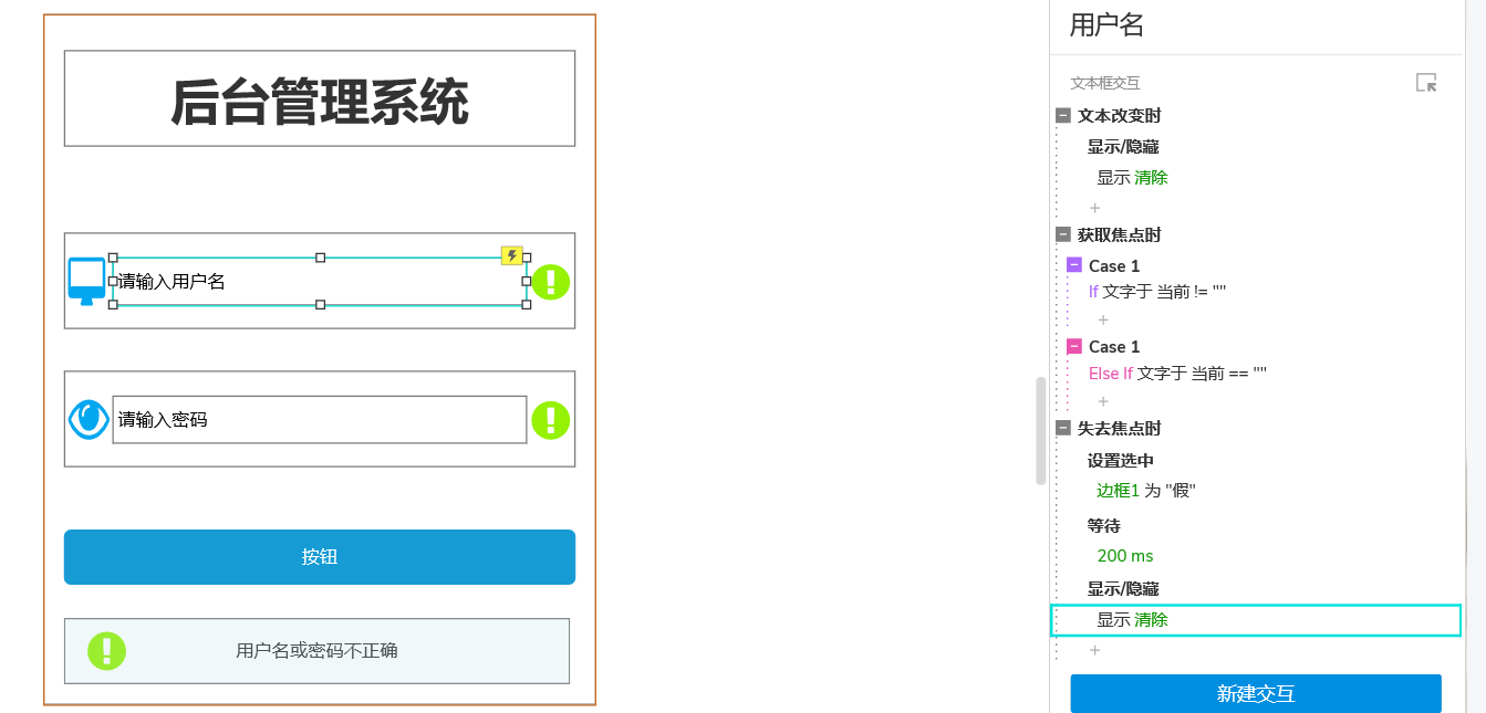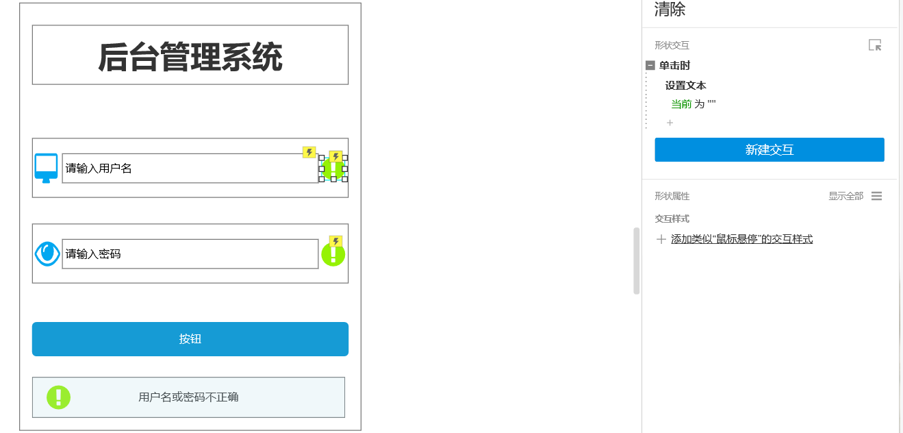 2.4 主要按钮交互设置(重点),最后将将清除按钮,警告提示隐藏就可以了。