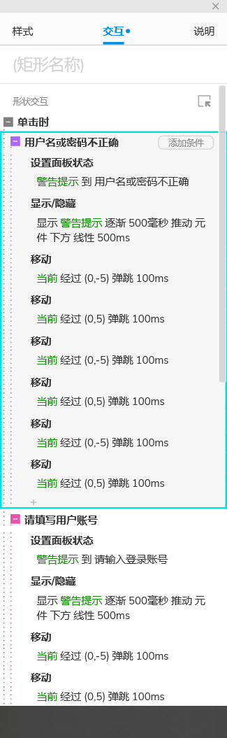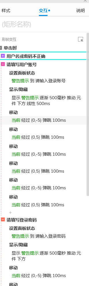 总结:以上就是登录界面的制作,有两个地方需要加深理解,一是动态面板的使用,二是推动弹窗的交互,容易出错。