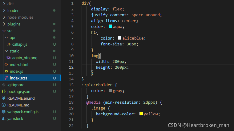 由于我们引入了scss预编译css文件,所以我们需要安装一下sass-loader、css-loader,style-loader这几个依赖。