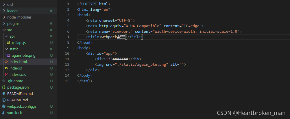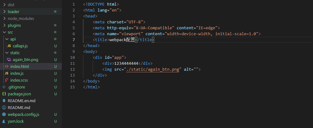 由于我们的图片再html文件内容引入,但是默认是打包入口文件里面导入的图片,所以如果我们不在入口文件引入直接在html文件内部引入的话我们需要额外用html-loader去处理