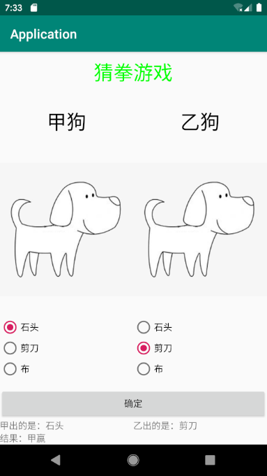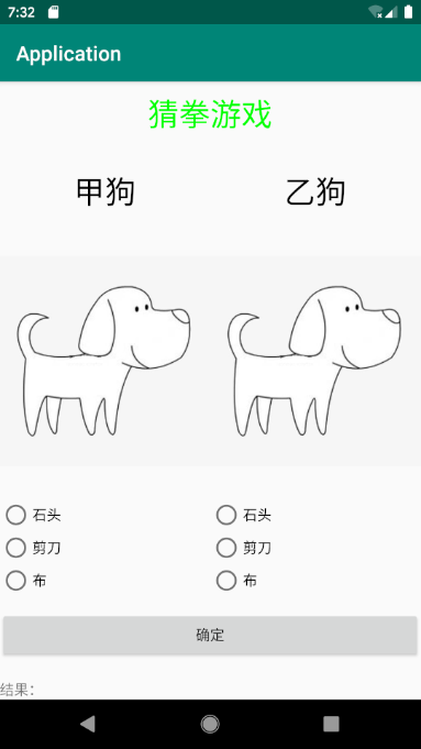 学android已经两周了,这周设计了一个小游戏,猜拳游戏,先看一下界面