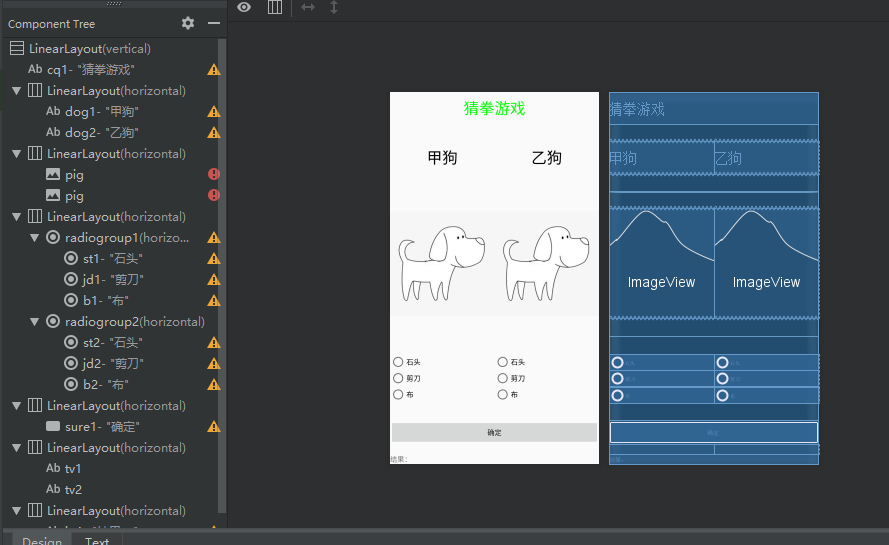 我选用的是线性布局,并且通过线性布局的镶嵌,完成了这个小游戏的设计。