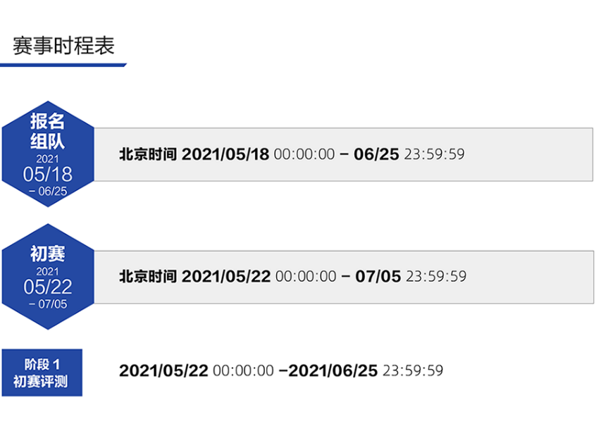 初赛评测阶段。报名组队成功后,选手可前往“参赛模板下载”区下载初赛数据(开放下载时间2021.5.22 00:00:00),本地调试算法,在线提交结果。以初赛评估集的打分结果计算得分排名,并以每队最优成绩排名,排行榜实时显示最新结果。