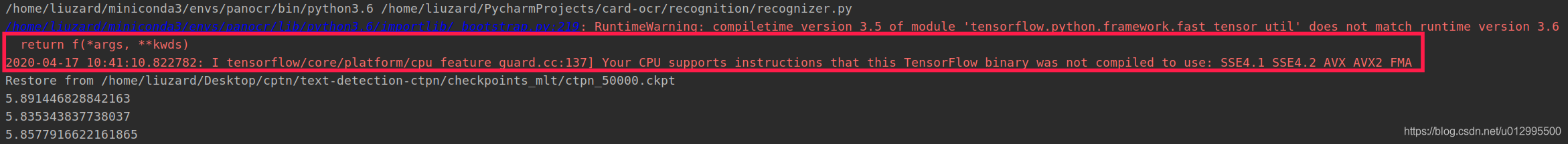 在用 pip 安装tensorflow的CPU版本后,在运行的时候通常会出现如下提示:Your CPU supports instructions that this TensorFlow binary was not compiled to use: SSE4.1 SSE4.2 AVX AVX2 FMA