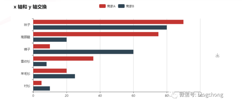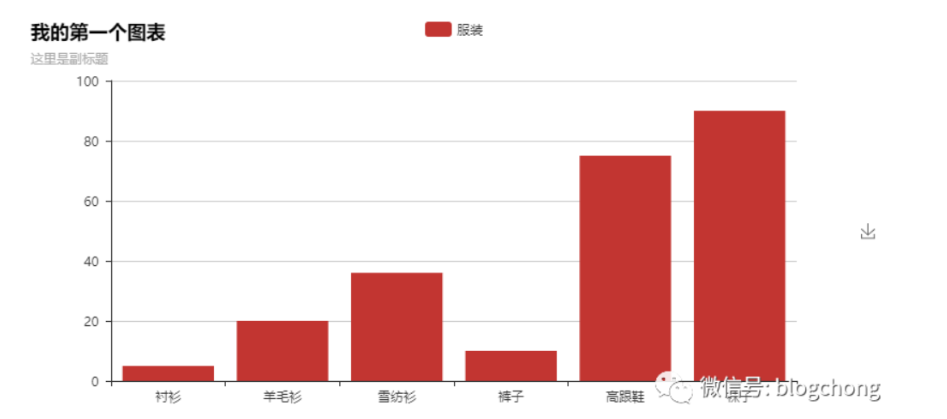 3 bar.add("服装", ["衬衫", "羊毛衫", "雪纺衫", "裤子", "高跟鞋", "袜子"], [5, 20, 36, 10, 75, 90])