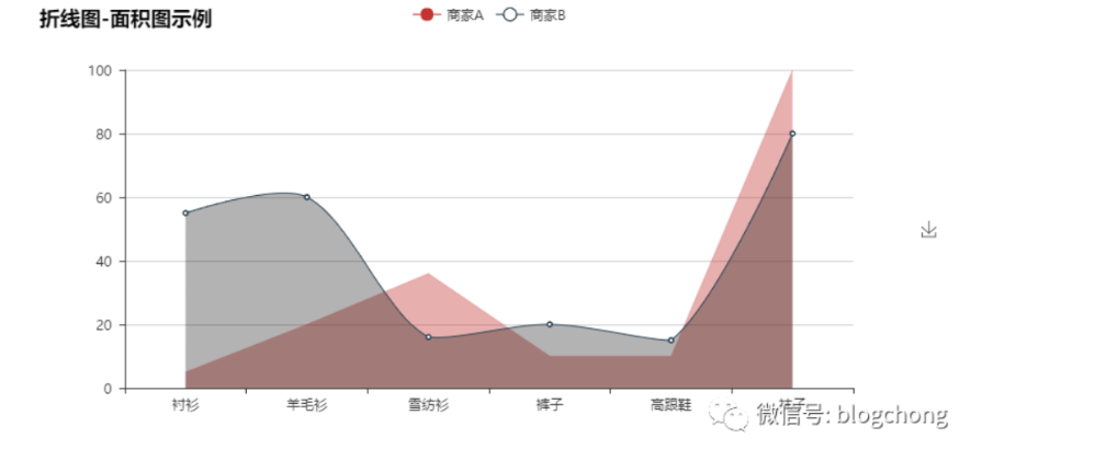 3 line.add("商家B", attr, v2, is_fill=True, area_color='#000', area_opacity=0.3, is_smooth=True)