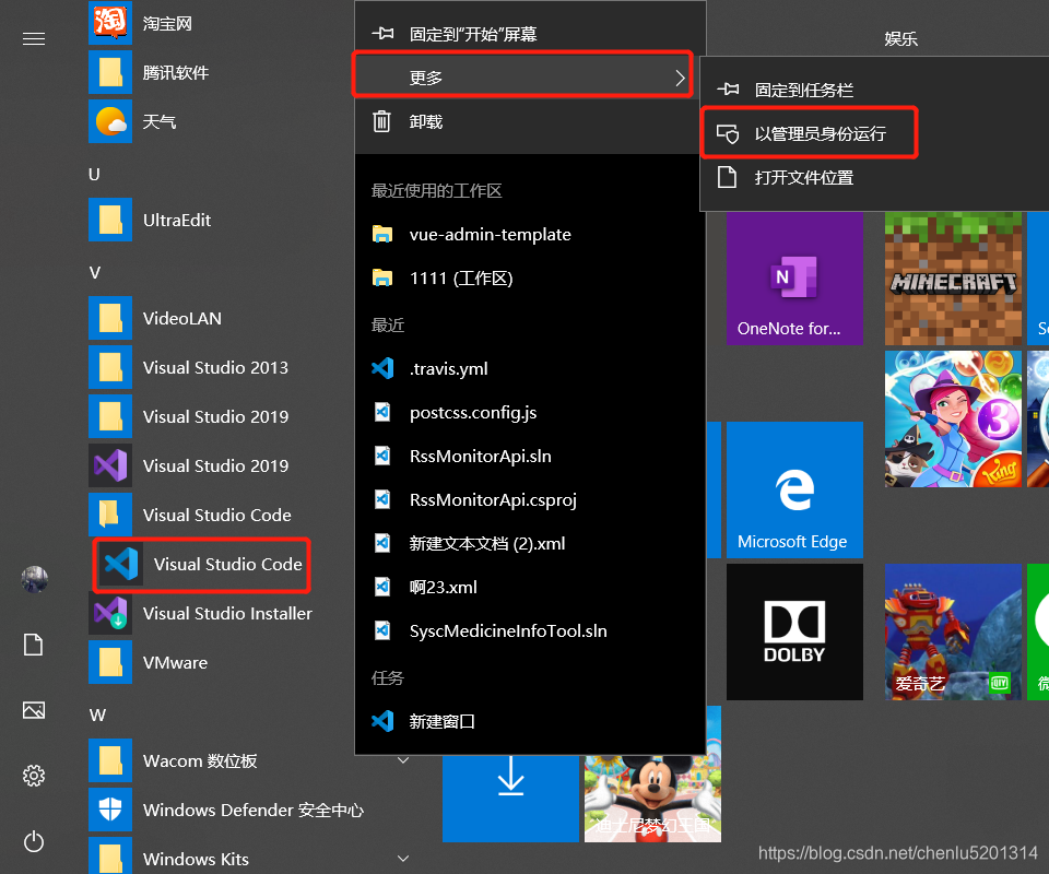 2、以管理员权限运行Visual studio Code