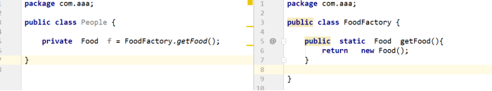 我们如果直接正转操作使用 food 此时将来如果food变成food2 此时改起来不好改,所以我们使用简单工厂模式。