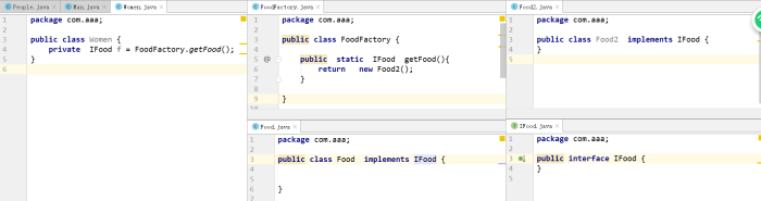 还有一个核心问题没有解决,当我们将工厂中的food换成food2的时候 ,此时并没有实现一个效果,所有的类都改完成, 而是全部报错