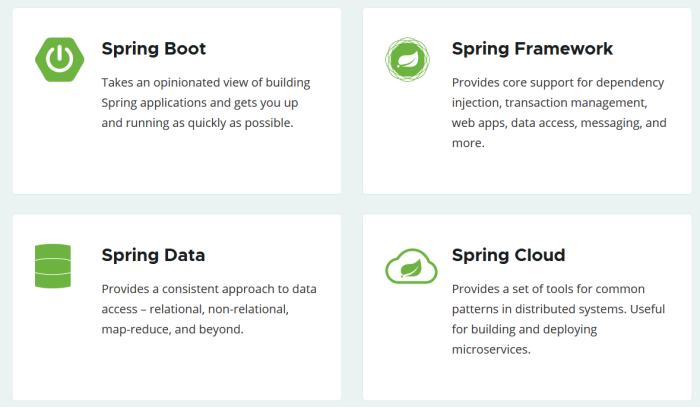 我们可以看到spring有很多产品 spring已经变成了一个生态圈。但是我们平时还是需要将spring理解成Spring Framework