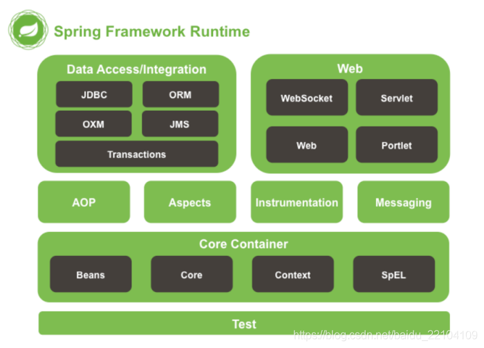 Core Container: 核心容器。这是IoC思想的关键,Spring负责创建对象 并且存放到 核心容器中。