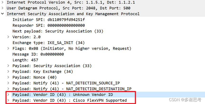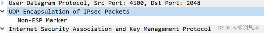 对于ISAKMP报文,报文没有变化,只是IKE第一阶段之后的报文就会将其端口修改为4500