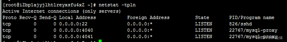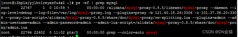 mysql-proxy --daemon --log-level=debug --log-file=/var/log/mysql-proxy.log --plugins=proxy -b 填写master-IP:3306 -r 填写slave-IP:3306 --proxy-lua-script="/alidata/mysql-proxy-0.8.5/share/doc/mysql-proxy/rw-splitting.lua" --plugins=admin --admin-username="admin" --admin-password="admin" --admin-lua-script="/alidata/mysql-proxy-0.8.5/share/doc/mysql-proxy/admin.lua"3.启动MySQL-Proxy之后,查看端口和相关进程。