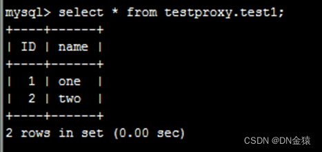 从库中查找testproxy.test1表的数据,与主库一致,主从同步成功