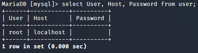 - select User, Host, Password from user;