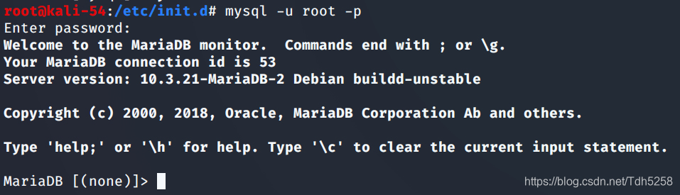 - 命令行下输入mysql ,进入Mariadb命令行界面