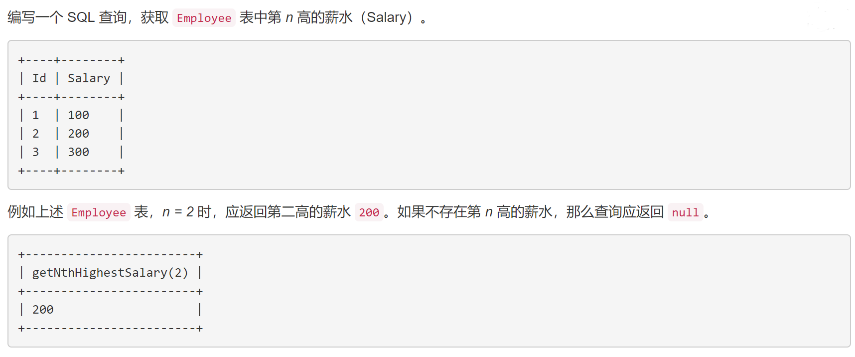 原题链接:https://leetcode-cn.com/problems/nth-highest-salary/description/