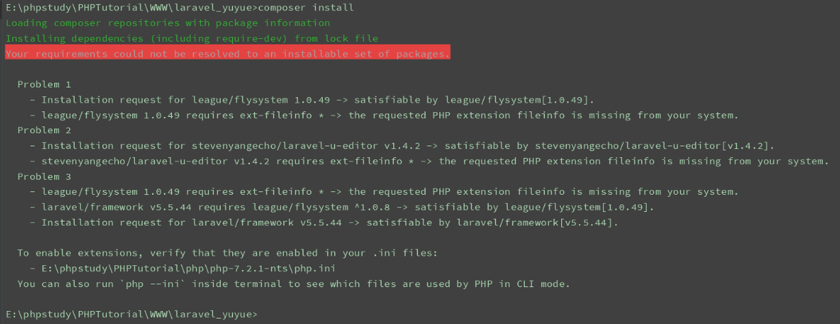 composer install 的时候出现报错出现上边的报错,查看下php的扩展php_fileinfo 是否开启就ok了!版权声明:本文为weixin_38728964原创文章,遵循CC 4.0 BY-SA版权协议,转载请附上原文出处链接和本声明。原文链接:https://blog.csdn.net/weixin_38728964/article/details/97134761