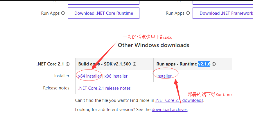 1.首先你可以Google搜索一下.NET Core,如果没错的话第一个就是微软的官方下载地址,当然你可以点击这里进行下载 (目前sdk最新的是v2.1.500,runtime最新的版本是v2.1.6 )进行开发的话下载SDK即可。