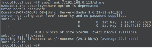 通过Linux客户端访问利用命令smbclient -L IP地址/share来访问共享目录