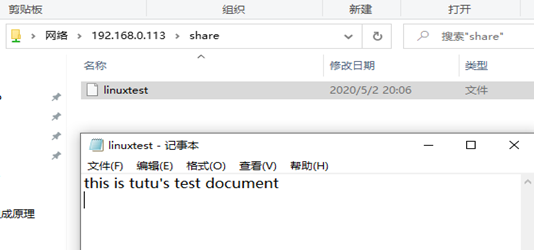 3、编辑一个txt文件,并上传让Windows客户端通过网上邻居访问