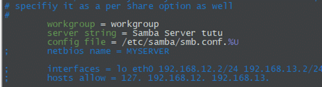 1、通过命令vim /etc/samba/smb.conf 来配置文件
