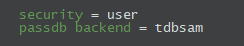 然后将security安全级别设置为user,使用系统用户,samba密码登陆