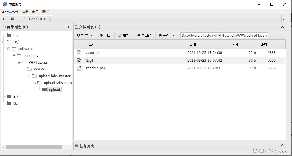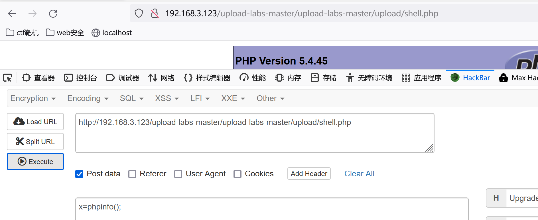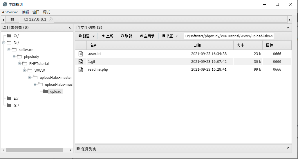 查看upload文件夹也可以发现shell.php文件,即上传成功