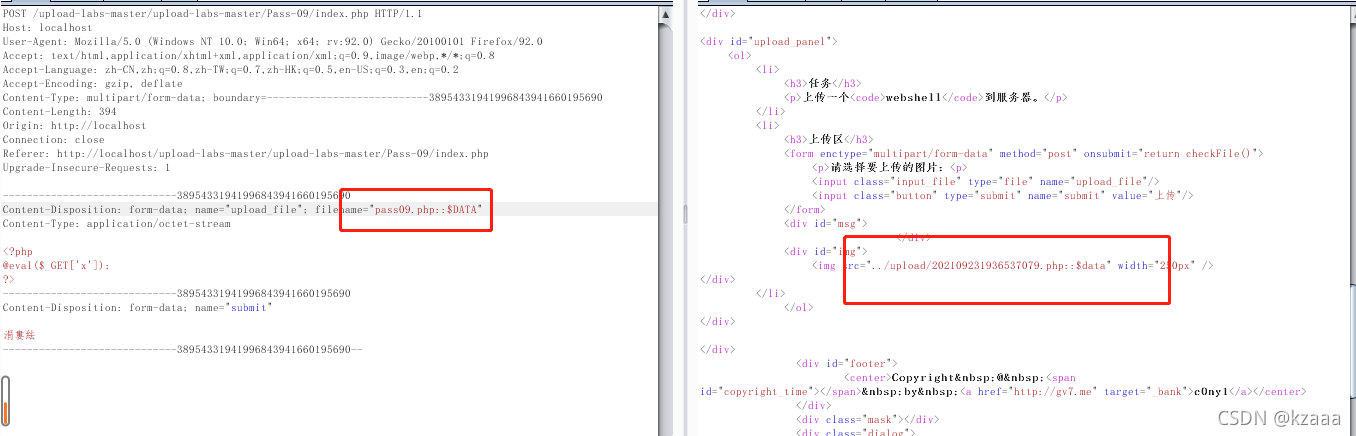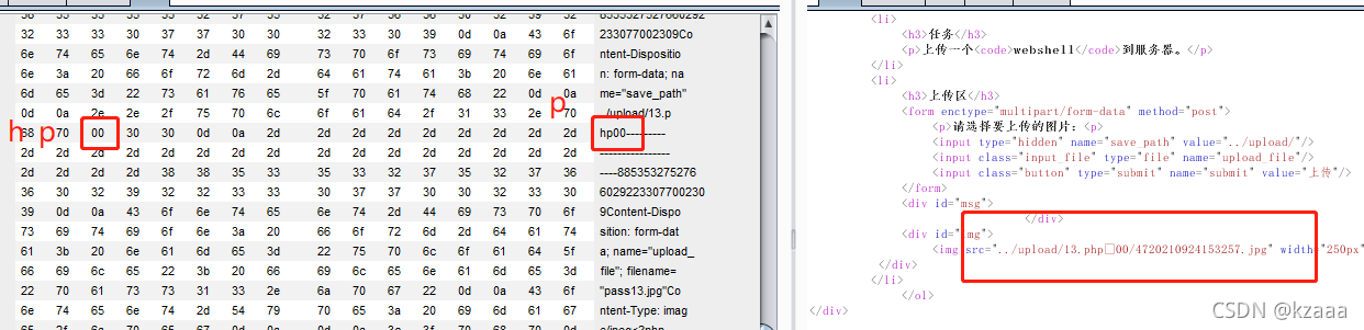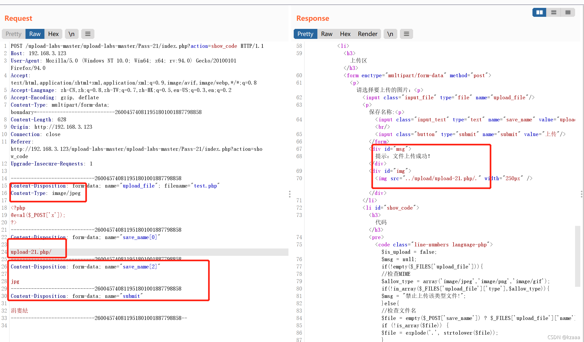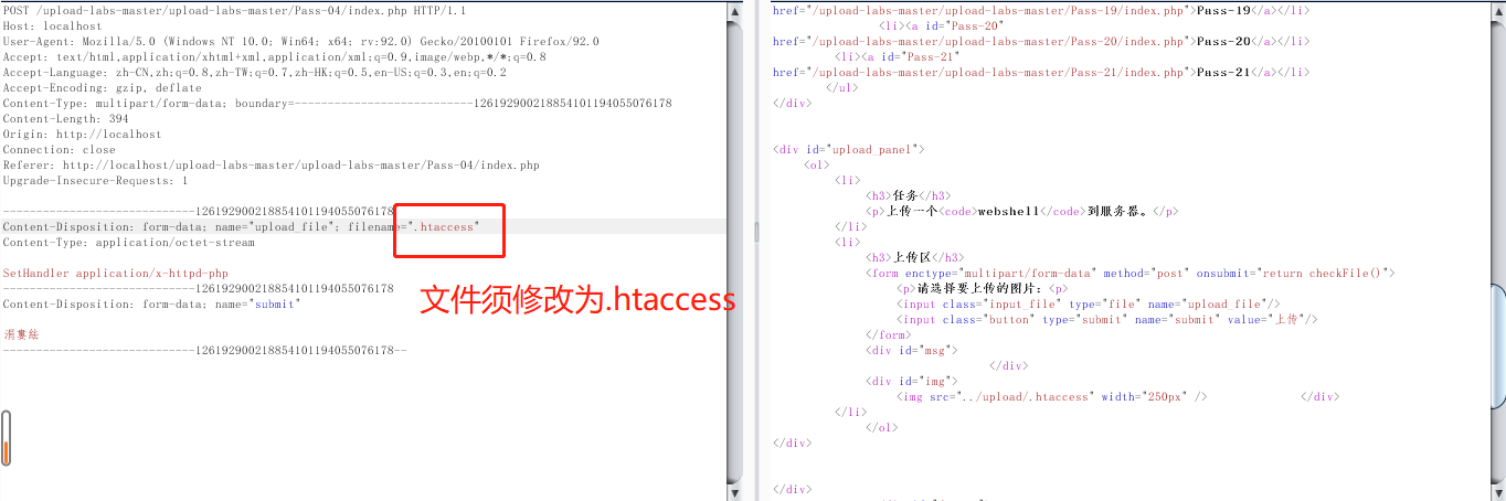 方法二:也可以将上传的文件后缀修改为合法后缀,然后抓包修改为原来的后缀