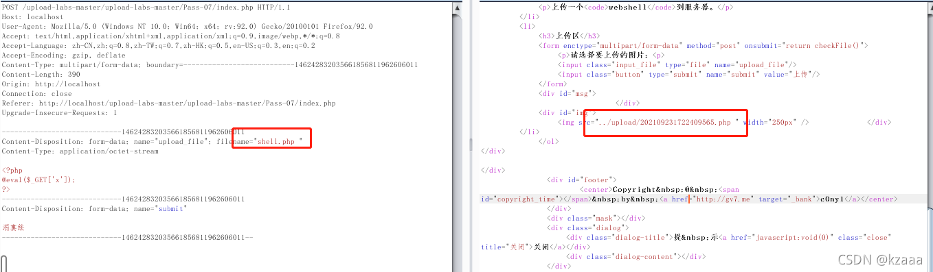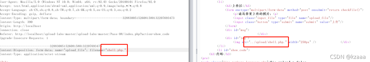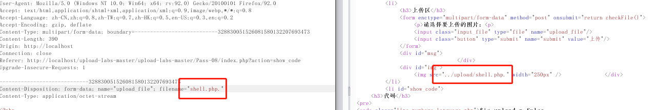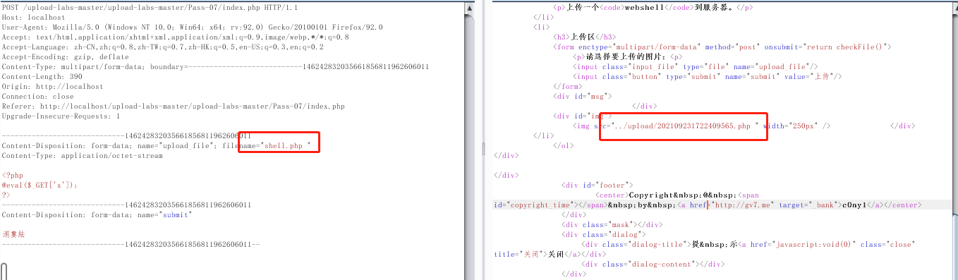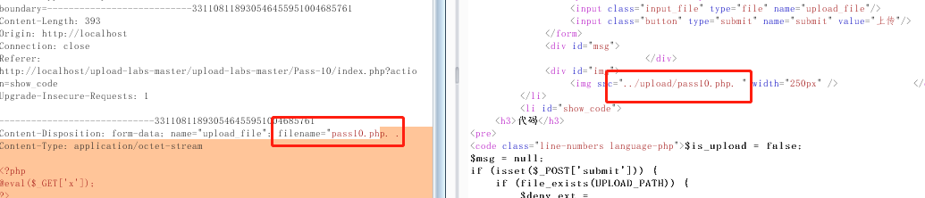 修改后缀时应该php后面加空格,否则,虽然能上传成功,但是无法利用,这是由于文件命名时会自动忽略最后的空格