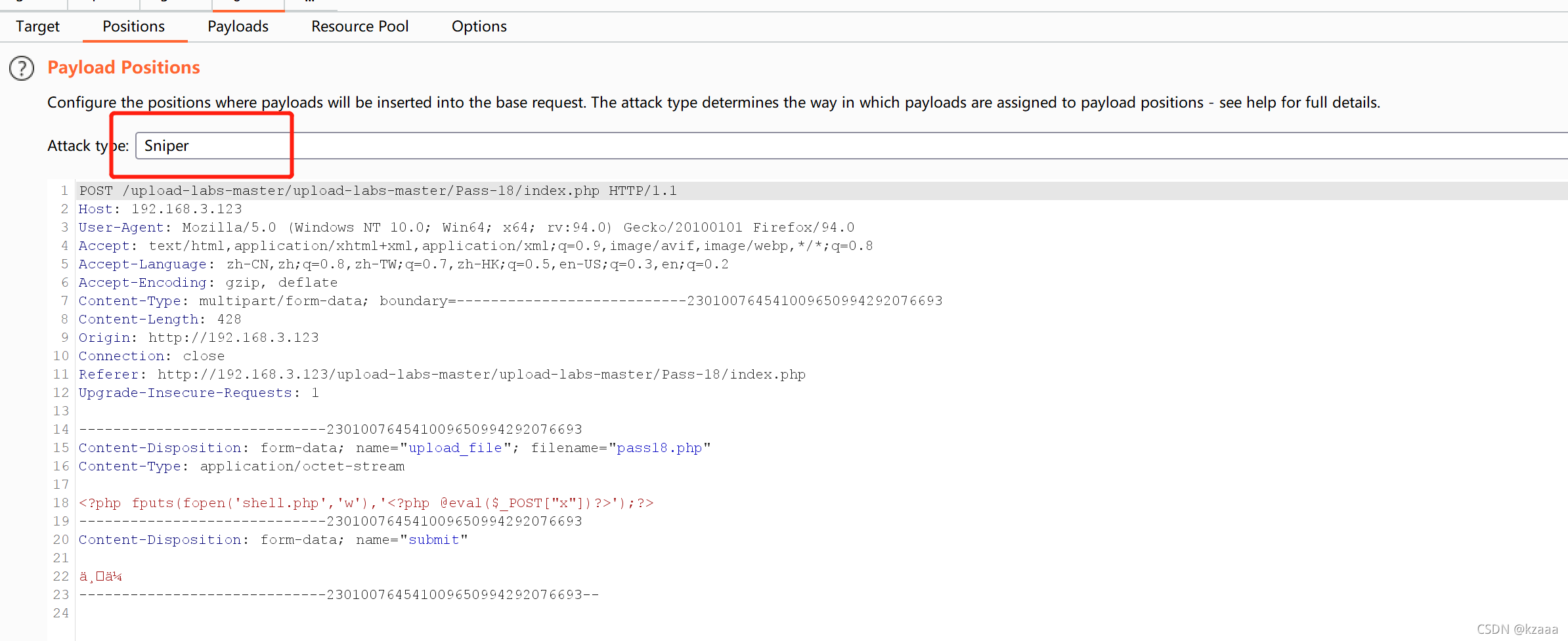 这个语句是指当访问pass18.php时,就会像写入一个shell.php