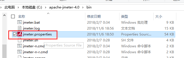 完成后,保存,找到jmeter的配置文件: jmeter.properties