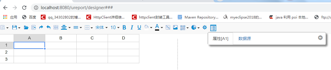 driver-class-name: com.mysql.cj.jdbc.Driver # 加载Driver驱动11、启动项目,查看效果,输入localhost:8080/ureport/designer(根据上面第五步中的/ureport/*来的)