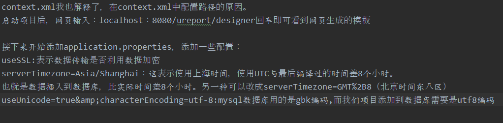 </beans>7、添加以下内容,这里在第五步的时候本应该是引入classpath:ureport-console-context.xml,变成classpath:context.xml后,在本文件中导入以让启动类找到此配置文件