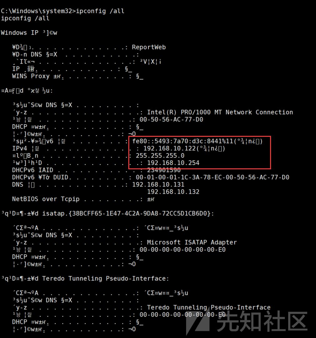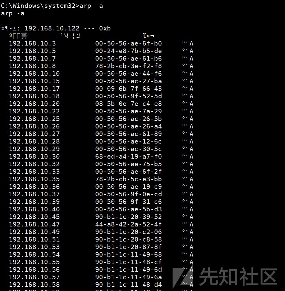 接下来,查看IP信息以及arp缓存,查看网段分布情况: