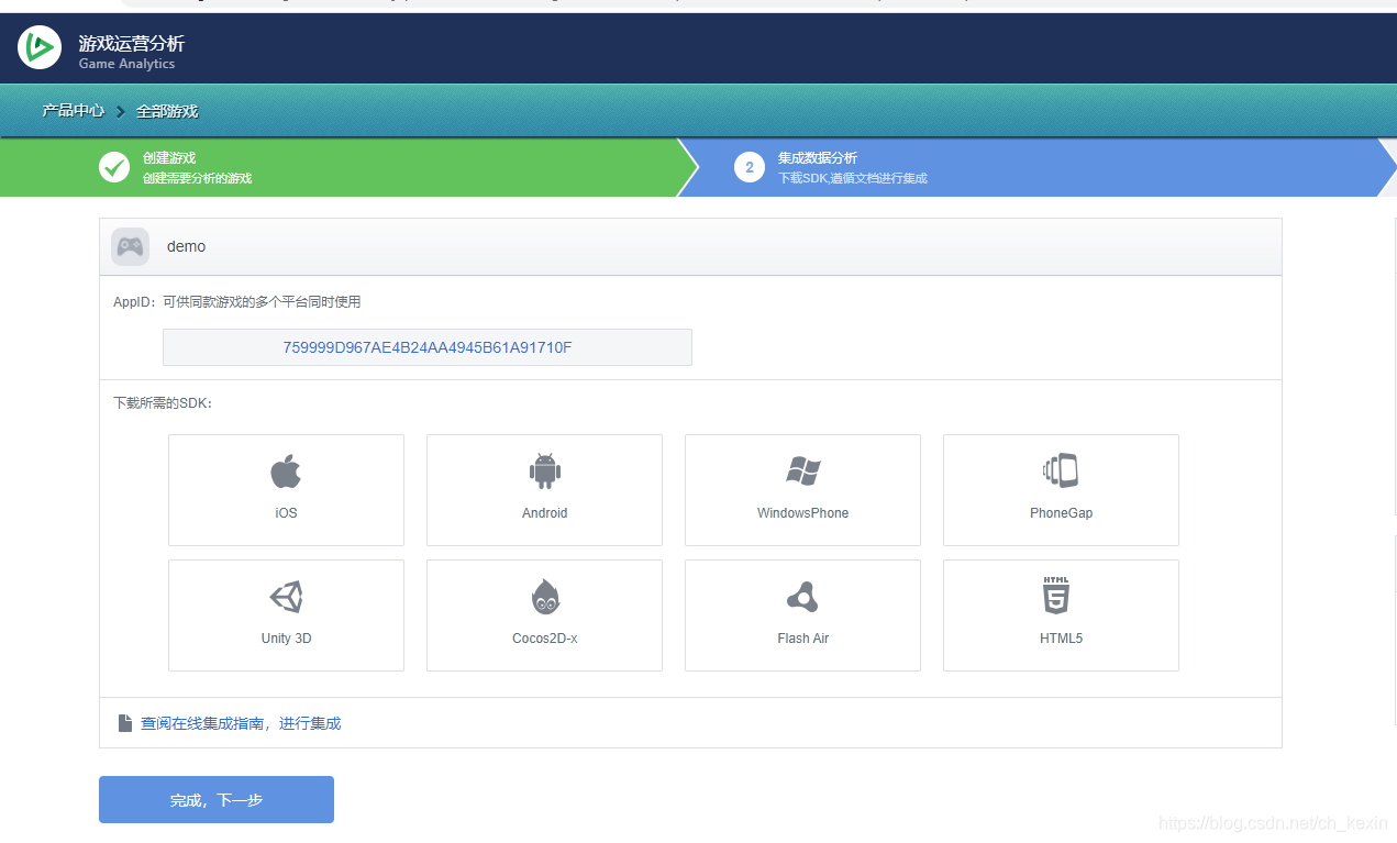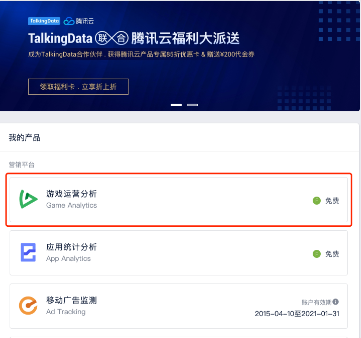 1、注册并登录https://www.talkingdata.com/ ,选择Game Analytics产品线