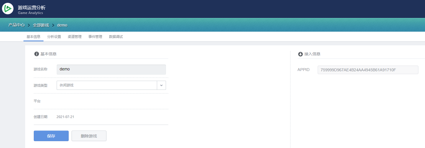 如果已创建的应用,请从“游戏管理->基本信息”中查看App ID。