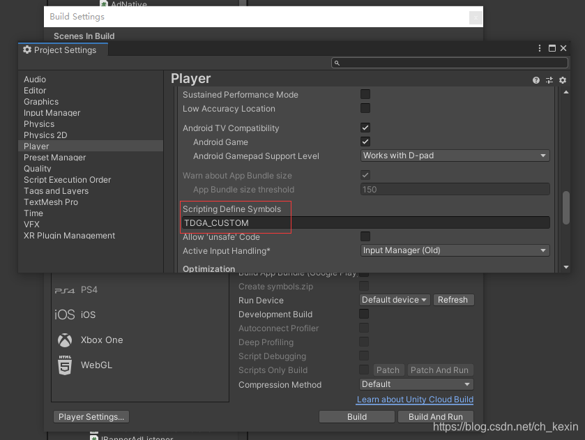 打开Build Settings,先在Platform中选择Android或iOS平台,再点击Switch Platform。当切换完平台后,点击Player Settings,然后在Other Settings的Scripting Define Symbols中输入所选功能相应的宏(如果有多个宏,需要用分号隔开;Android 和 iOS 需要分别添加)。各功能宏定义如下:
