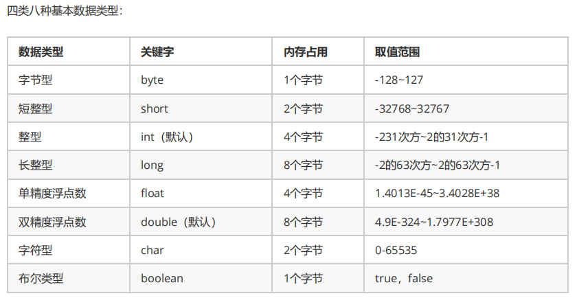 整数类型是 int 、浮点类型是 double 。long类型:建议数据后加L表示。float类型:建议数据后加F表示。