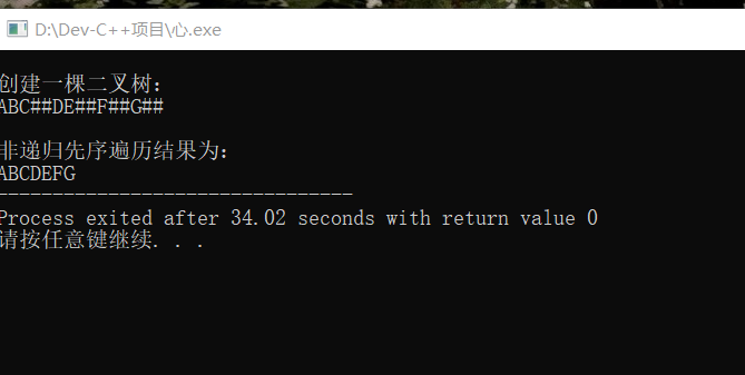(2)用非递归方式遍历二叉树(先序),输出遍历序列。