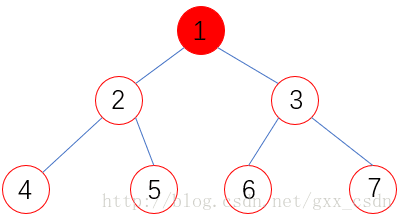 - 继续遍历3的右孩子,7入栈。此时栈为1,3,7.7无左右孩子,7退栈。不打印。3左右孩子遍历完,3退栈。1的左右孩子遍历完,1退栈。输出1,2,4,5,3,6,7。退出第一层while循环。非递归函数调用完毕。